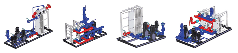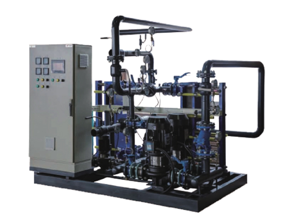 板式換熱機組是把一次網(wǎng)得到的熱量,自動連續(xù)的轉(zhuǎn)換為用戶需要的生活用水及采暖用水。即熱水(或蒸汽)從機組的一次側(cè)入口進入板式換熱器進行熱交換后,從機組一次側(cè)出口流出;二次側(cè)回水經(jīng)過過濾器除去污垢后,通過二次側(cè)循環(huán)水泵進入板式換熱器進行熱交換,生產(chǎn)出用于采暖、空調(diào)或地板采暖等不同溫度的熱水,以滿足用戶的要求。